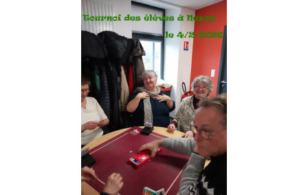 Rencontre autour d’une passion Ce mercredi 4 février, l’antenne de bridge de Nexon accueillait le Bridge club de Limoges pour un tournoi entre élèves Ambiance joyeuse pour ce tournoi qui s’est terminé autour d’un goûter préparé par les joueurs de N...