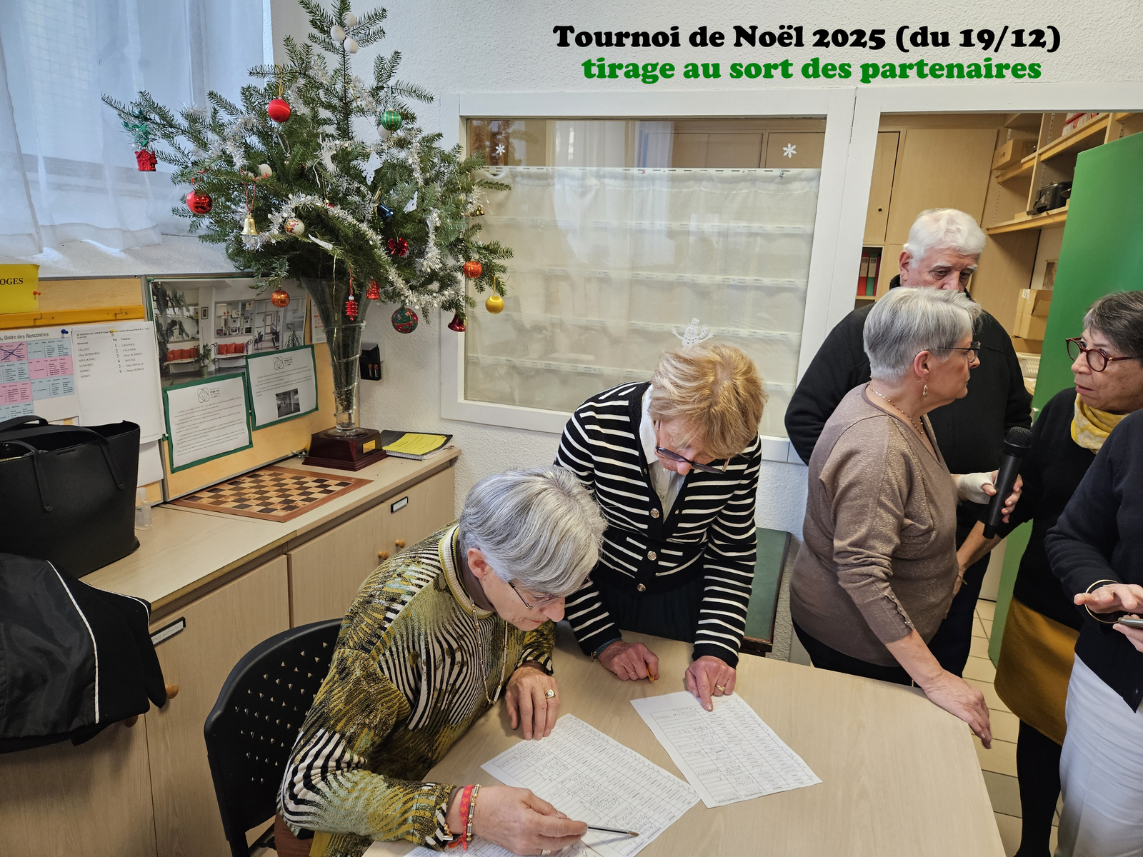 Tournoi de Noël du 19 décembre 2025: Organisé en 2 tournois simultanés de 10 tables chacun. Une sympathqique table de joueurs de Nexon en cours de formation s'est adjointe à nous pour dérouler des donnes libres hors tournoi.